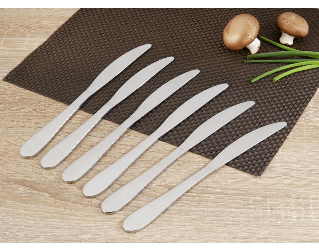 - sechsteilige Sets mit je sechs Gabeln, Messern, Ess- und Kaffeelöffeln aus Edelstahl