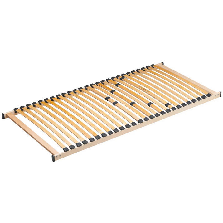 Verfügt das Bett über durchgehende, längs angeordnete Auflageleisten? Bei dieser häufigen Ausführung eignen sich alle Arten von Lattenrosten. Federholzrahmen kommen ebenso infrage wie einfache Rollroste.