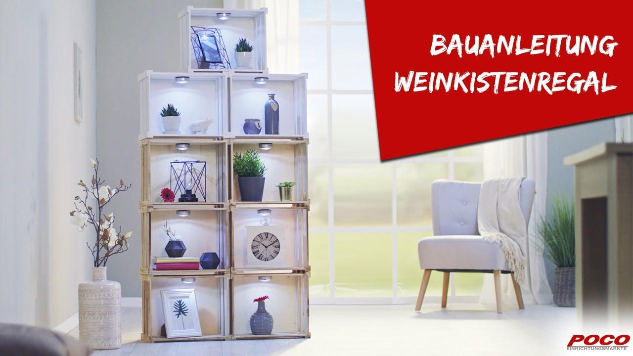 In unserem Video zeigen wir Ihnen, wie Sie mit ein paar Handgriffen aus Weinkisten ein modernes und beleuchtetes Regal zaubern können.