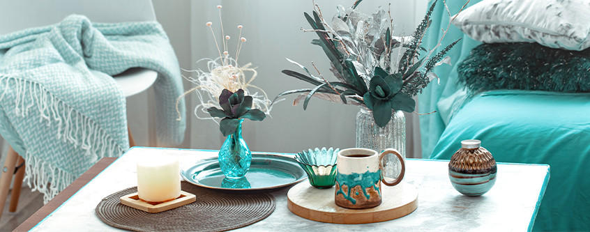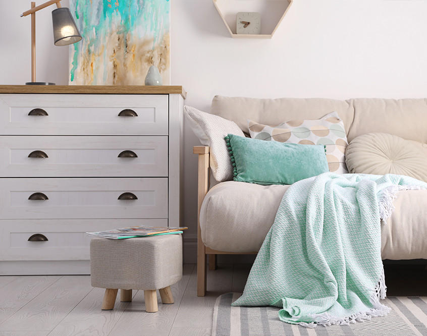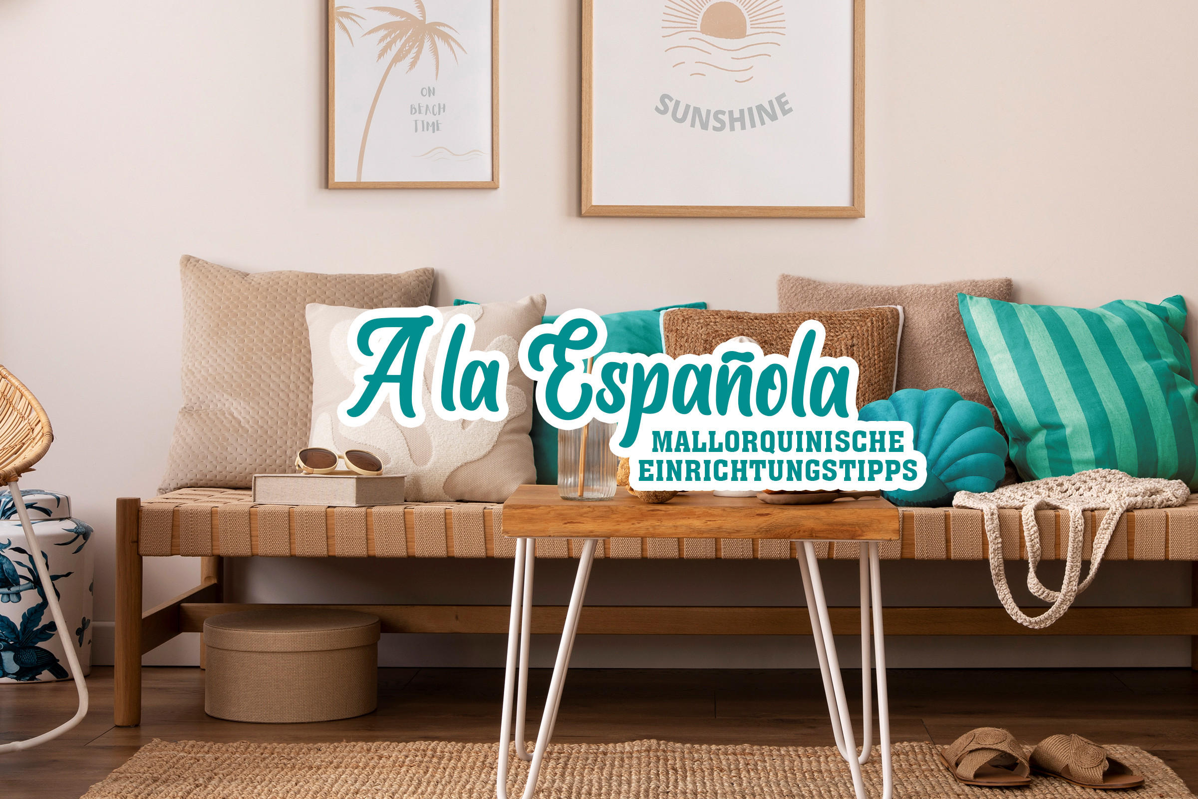 Das Mediterrane findet sich oft in den Farben wieder, so sind die meisten Wohnungen in Spanien, insbesondere auf Mallorca, in Sandtönen sowie den Farben Beige, Weiß, Blau und Türkis gehalten. Es spiegeln sich alle Naturtöne in der Inneneinrichtung wider, vom blauen Meer über die verschiedenen Holzarten bis hin zu den Tonvariationen, die größtenteils für Dekorationen wie Lampen, Vasen oder Geschirr genutzt werden. Im Hinblick auf die Farbpalette empfiehlt sich eine bunte Deko, zum Beispiel als Sofakissen und Decken in Meerblau oder Türkis.