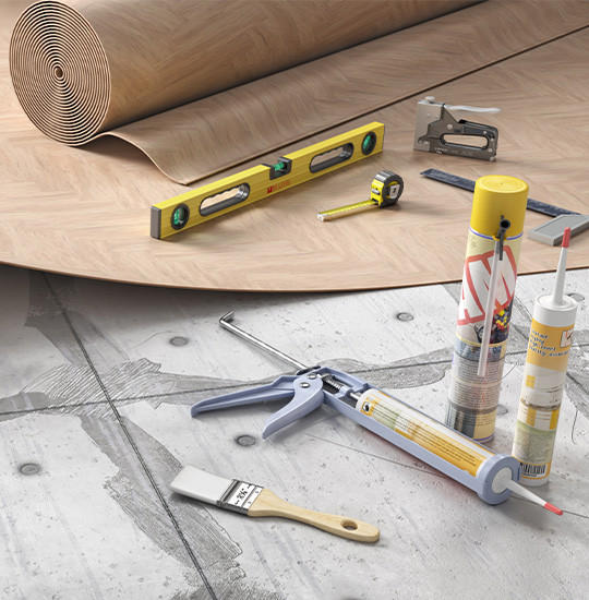 Um PVC-Boden zu verlegen, benötigen Sie nur eine übersichtliche Auswahl an Werkzeug. Zum absoluten Pflichtprogramm gehören: