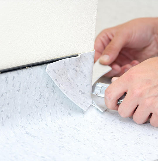 3. Ränder und Ausschnitte des PVC-Bodens schneiden