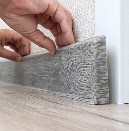 Die Übergangsprofile bedecken die Übergänge in andere Räume oder zu anderen Bodenbelägen. Hier gibt es unterschiedliche Varianten. Überprüfen Sie, ob Sie eine Ausführung brauchen, die unterschiedliche Höhen ausgleicht. Außerdem haben Sie die Wahl zwischen verschiedenen Befestigungsarten. Möchten Sie nicht bohren und schrauben, wählen Sie eine selbstklebende Variante.