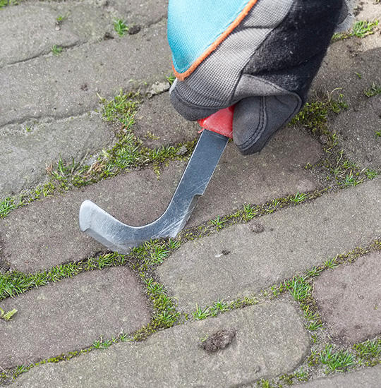 In den Fugen zwischen Terrassenplatten wächst gerne alles Mögliche an Unkraut und Moos. Herbizide kommen hier nicht infrage, da chemische Unkrautvertilgungsmittel auf Terrassen verboten sind. Greifen Sie zu einem Fugenkratzer und einem Unkrautbrenner. Hinweis: Offene Flammen bergen stets das Risiko, einen großen Brand zu verursachen. Verzichten Sie bei trockener Witterung auf diese Methode, da Waldbrandgefahr besteht.