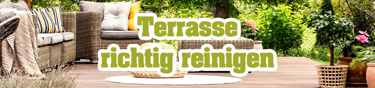 Grünbelag, Moos, Blütenstaub und Schmutz auf der Terrasse putzen Sie mit den richtigen Reinigern ganz einfach weg. Lesen Sie in unserem Ratgeber, wie Sie Ihre Terrasse am besten reinigen – umweltschonend und abgestimmt auf den jeweiligen Bodenbelag.