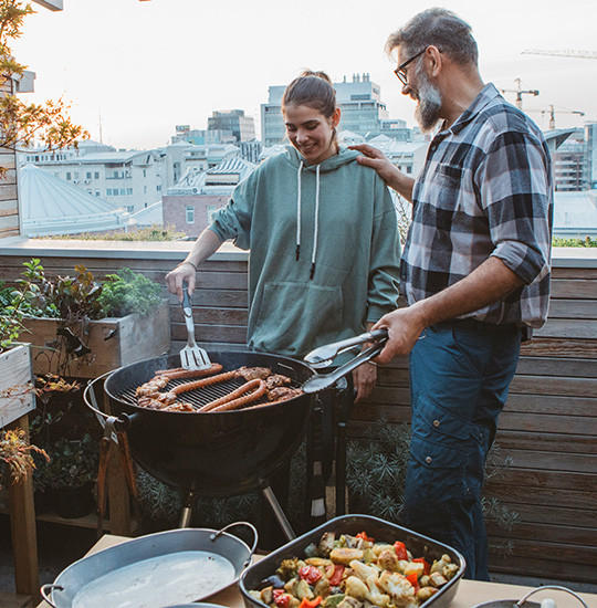 Hier ist natürlich kein elektrischer Tischgrill, sondern ein Gas-BBQ oder ein Holzkohlegrill gemeint. Falls es draußen nicht gerade in Strömen regnet, bietet der Grill eine gute Alternative. Auf dem Grillrost lassen sich neben den Klassikern wie Bratwurst noch viele weitere köstliche Speisen zubereiten. Dafür brauchen Sie nur einen Feuertopf (auch als Dutch Oven bekannt) und frische Zutaten für abwechslungsreiche Mahlzeiten: wie Eintöpfe, Schichtfleisch, Krustenbraten, gefüllte Paprika oder veganen Tofu-Gulasch.