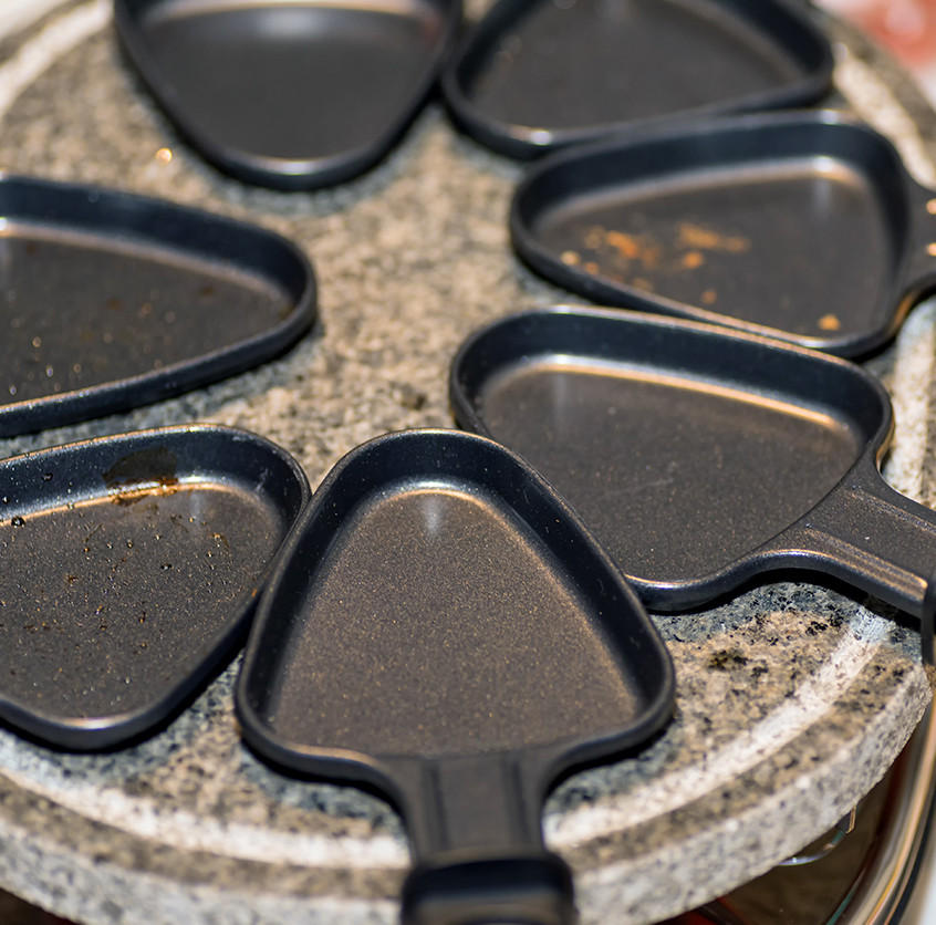 So können Sie antihaftbeschichtete Pfännchen und Grillplatten eines Raclettes reinigen: