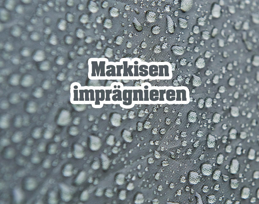 Herkömmliche Markisenstoffe sind wasserabweisend, aber nicht wasserdicht. Das heißt: Ein paar Tropfen fangen sie ab. Regnet es stärker oder länger, dringt die Feuchtigkeit durch. Es gibt auch wasserdichte Bespannungen. Diese kommen beispielsweise bei Straßencafés zum Einsatz, lassen sich allerdings ebenso im privaten Bereich verwenden. Sie besitzen eine zusätzliche Beschichtung. Achten Sie in der Beschreibung auf den ausdrücklichen Hinweis „wasserdicht“.