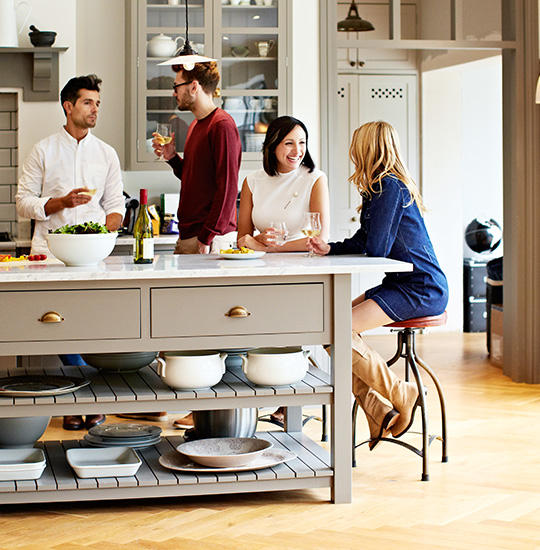 - Eine offene Küche mit Insel ist der perfekte Treffpunkt für geselliges Brutzeln mit Freunden und Familie. Ein großzügiger Küchenblock mit Barstühlen rundherum ersetzt durchaus den Küchentisch.