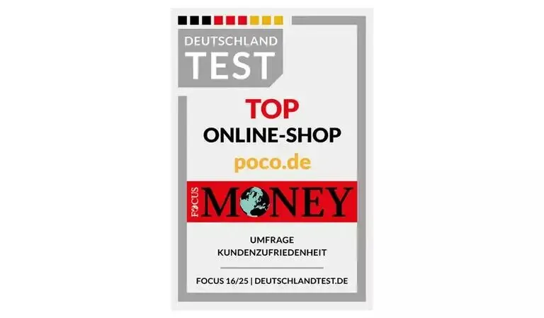 Technische Qualität: exzellent, Benutzerfreundlichkeit: sehr hoch – so bewerteten Kunden das Angebot von POCO.de in einer Umfrage von COMPUTER BILD und Statista. Damit gehören wir erneut zu den besten deutschen Online-Shops der Kategorie „Wohnen“ und dürfen das Siegel „Top Shop 2025“ nutzen. Weiterlesen