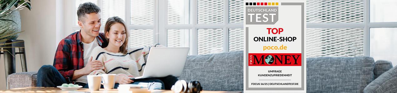 Unter den Online-Shops „Möbel mit Niederlassungen“ gehört poco.de zu den überzeugendsten Anbietern. Davon zeugt aktuell eine Veröffentlichung im Nachrichtenmagazin FOCUS Money (16/2025) und bis zum Frühjahr 2026 das „Top Online-Shop 2025“-Siegel. Alle Mitarbeiter, die am Erfolg von POCO.de beteiligt sind, freuen sich darüber und tun weiterhin alles, um Kundinnen und Kunden besten Service zu bieten.