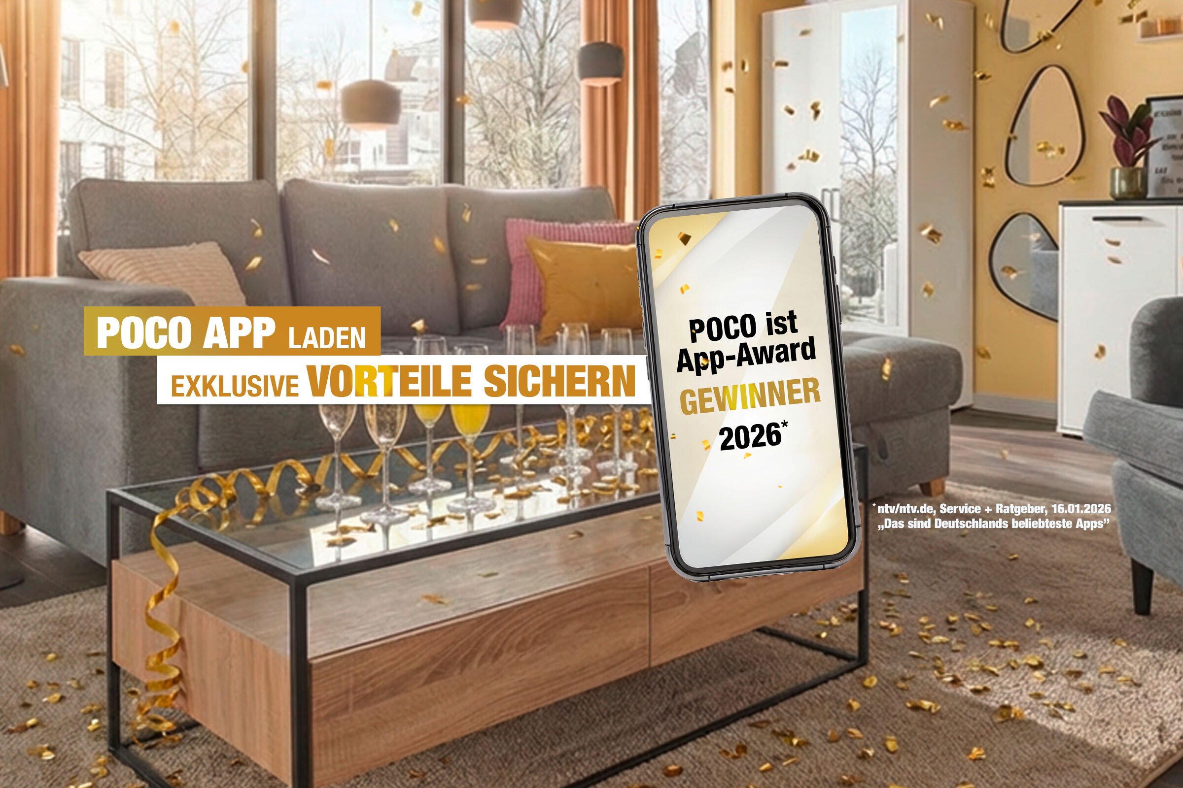 Das Deutsche Institut für Service-Qualität und der Nachrichtensender ntv verleihen jedes Jahr den Deutschen App-Award. Ausgezeichnet werden Apps, die Verbraucherinnen und Verbraucher besonders schätzen. Über die Preisträger in 48 Kategorien entschied eine Befragung mit 23.297 Kundenurteilen. In der Kategorie Möbel-Shopping-Apps konnte sich POCO den Platz 2, sowie die Auszeichnung zum deutschen App-Award sichern.