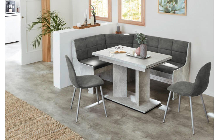 Abschnitt überspringenEckbankgruppen sind echte Klassiker der Kücheneinrichtung und werden heute im Esszimmer wieder gerne gesehen. Bereits in den 60er- und 70er-Jahren waren sie in Essbereichen beliebt. Heute erleben die Eckbankgruppen ein Comeback im modernen Look. Helle Hölzer, zurückhaltende, cleane Formen, Polster und Kissen wirken einladend. Insbesondere bieten Eckbankgruppen viele Sitzplätze auf kleiner Fläche. Auf der Eckbank nehmen mindestens vier, an großzügigen Varianten sechs bis acht Personen Platz. Zusätzlich stehen üblicherweise zwei bis vier Stühle am Esstisch. So schaffen Sie Sitzgelegenheiten für bis zu zwölf Personen und benötigen eine wesentlich geringere Fläche als mit einem rechteckigen oder runden Esszimmertisch mit separaten Stühlen.