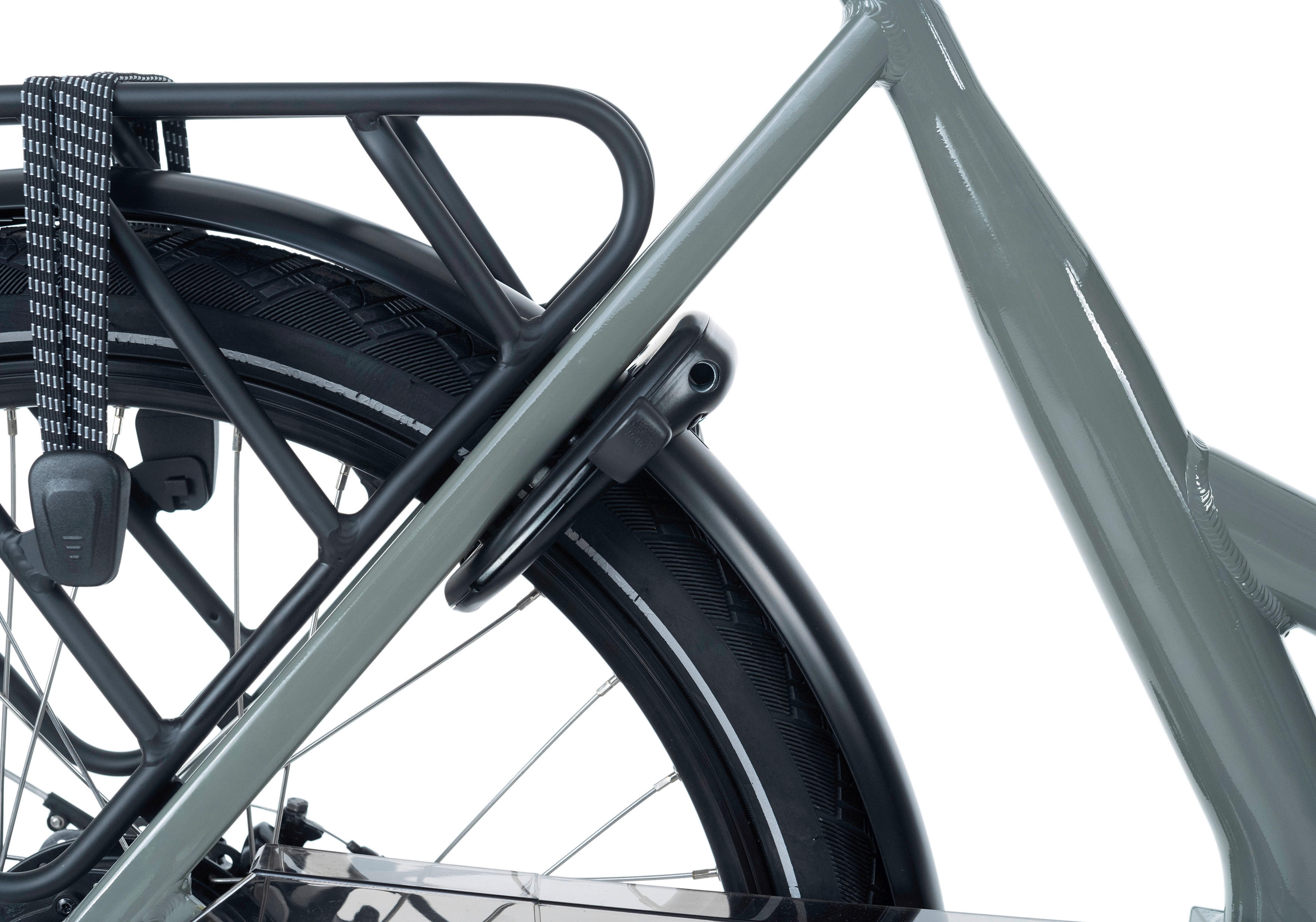 - Das Rahmenschloss dient in erster Linie als schnelle Sicherung für kurze Zeit. Zum Beispiel, wenn Sie kurz anhalten, aber das Rad im Auge behalten. Ein Rahmenschloss verhindert, dass jemand mit dem Rad wegfährt – jedoch nicht, dass er es wegträgt.