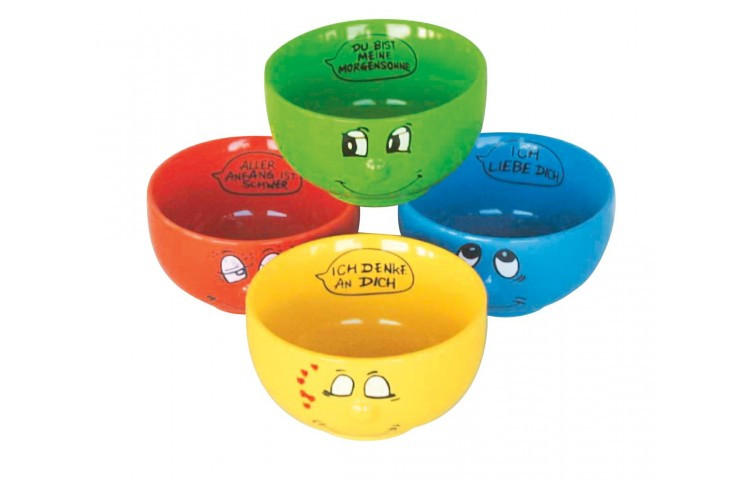 Abschnitt überspringenAls Farbtupfer und Gute-Laune-Macher auf Ihrem Frühstückstisch erfreuen bunte Müslischalen mit lustigen Smiley-Gesichtern. Mit frechen Sprüchen auf der Innenseite zaubern sie selbst Morgenmuffeln ein Lächeln ins Gesicht. Oder Sie entscheiden sich für einen natürlichen Look mit Porzellan, das optisch an robustes Steingut erinnert.