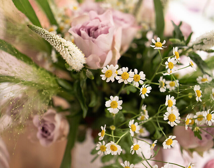 Auch frische Blumensträuße, z. B. aus Wiesenblumen, Hortensien oder Pfingstrosen, passen hervorragend in das ländlich inspirierte Ambiente. Wer es besonders authentisch möchte, arrangiert sie in Emaille-Kannen oder alten Milchkrügen – das bringt echten Landhaus-Charme ins Haus.