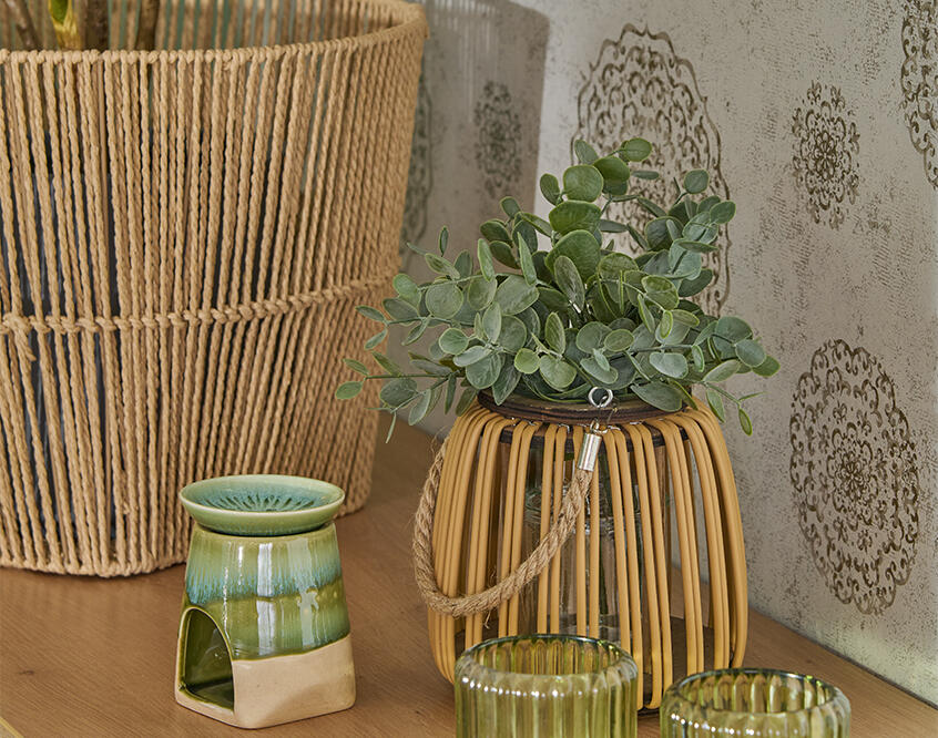 Grüne Zimmerpflanzen sind die perfekte Ergänzung zum Landhausstil. Sie bringen Leben in den Raum und verstärken die Verbindung zur Natur. Besonders gut passen klassische Zimmerpflanzen wie Efeu, Farn, Lavendel oder Buchsbaum – am besten in Ton- oder Korbtöpfen arrangiert, um den Einrichtungsstil auch hier wieder aufzugreifen.