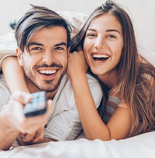 Das Schlafzimmer in unserer mittleren Preisstufe ist der perfekte Kompromiss aus schlafen und wohnen. Hier hält man sich einfach gerne auf. Das Zentrum dieses Raumes ist ein großes Boxspringbett, welches sich nicht nur hervorragend zum Schlafen eignet, sondern auch zum Entspannen beim Lesen oder Fernsehen einlädt. Dieses Schlafzimmerkonzept enthält nämlich sogar einen Fernseher für entspannte Filmabende direkt im Bett.
