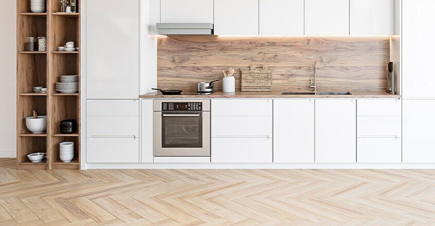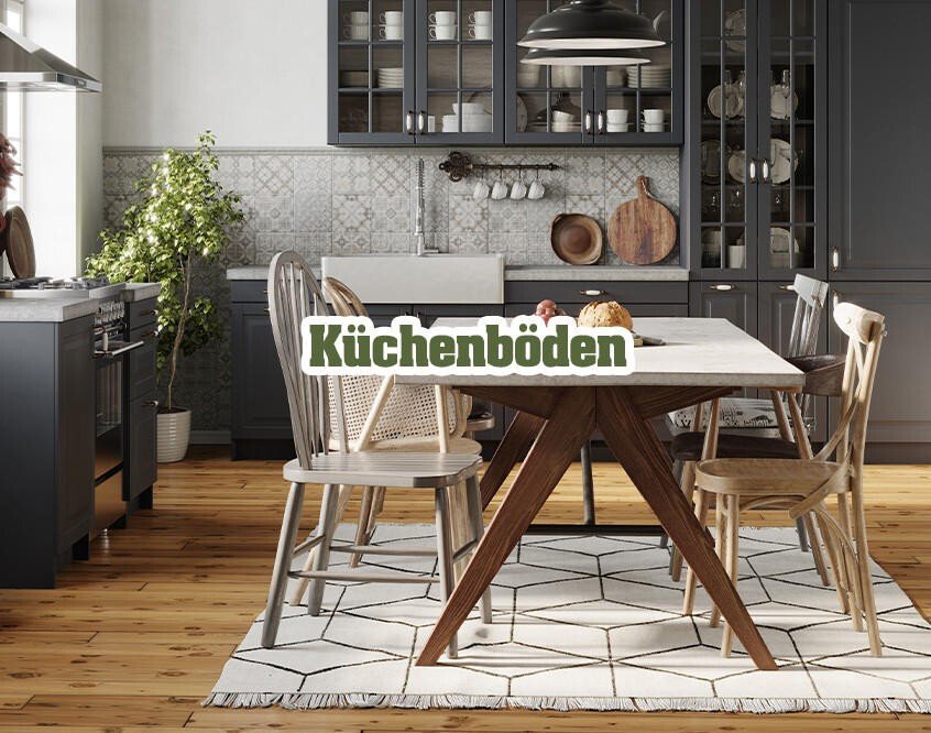 In der Küche sind robuste Beläge, die auch einen Schwung Feuchtigkeit vertragen, von Vorteil. Früher waren das vor allem Fliesen. Heute gibt es mit modernen PVC-Böden und Click-Vinyl interessante Alternativen. Mit Holzdekor ähneln sie optisch Parkett oder Laminat, sind jedoch wasserfest. Linoleum ist ein weiterer unempfindlicher Bodenbelag, der schon in den 1950er-Jahren extrem populär war.