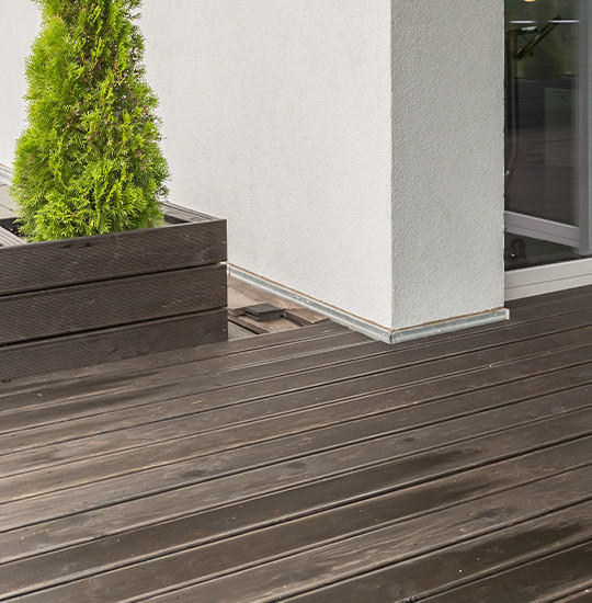 PVC ist ein von Haus aus wasserfestes Material. Eine gute Voraussetzung, um einen PVC-Boden draußen zu verlegen? Leider nicht. Im Außenbereich besteht – auch wenn Sie den Belag verkleben – das Problem, dass leicht Wasser darunter gelangt. Die Feuchtigkeit kann nicht mehr entweichen, was im Laufe der Zeit zu Schimmel führt. Eine Schwachstelle bei einem PVC-Boden auf der Terrasse sind vor allem die Ränder, die sich schwer abdichten lassen.