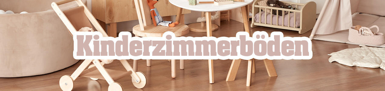 Eine interessante Alternative zu Laminat stellen Click-Vinyl und PVC-Böden im Kinderzimmer dar. Sie bestechen ebenfalls durch ihre Robustheit und die einfache Reinigung. Der Unterschied zu Laminat liegt in erster Linie darin, dass Vinylböden eine elastische Nutzschicht besitzen. Das sorgt für ein angenehmes Trittgefühl. Zudem federt der Belag etwas, wenn Spielzeug herunterfällt, was Geräusche dämpft. Auch optisch überzeugen die modernen Vinyl- und PVC-Böden im Kinderzimmer: Die Auswahl an wohnlichen Holzdekoren ist ebenso groß wie bei Laminat.