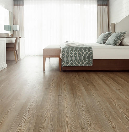 Wenn Sie zu einem Hartboden tendieren, bieten sich ebenfalls mehrere Möglichkeiten. Die beiden beliebtesten Arten moderner Hartböden, Laminat und Click-Vinyl, haben vieles gemeinsam: Sie punkten durch eine attraktive Holzoptik – oder, je nach Geschmack, ein Steindekor – zum moderaten Preis. Zudem sind sie pflegeleicht. Der hauptsächliche Unterschied liegt in der Oberfläche. Während Laminat hart ist, sind Vinylböden leicht elastisch und fühlen sich wärmer an. Beides sind klare Pluspunkte bei einem Bodenbelag im Schlafzimmer.