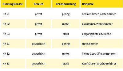 - Strapazierfähig: Bodenbeläge aus Vinyl sind ausgesprochen robust. Wie robust genau, hängt von der Nutzungsklasse ab. Eine Übersicht über die Nutzungsklassen finden Sie weiter unten.
