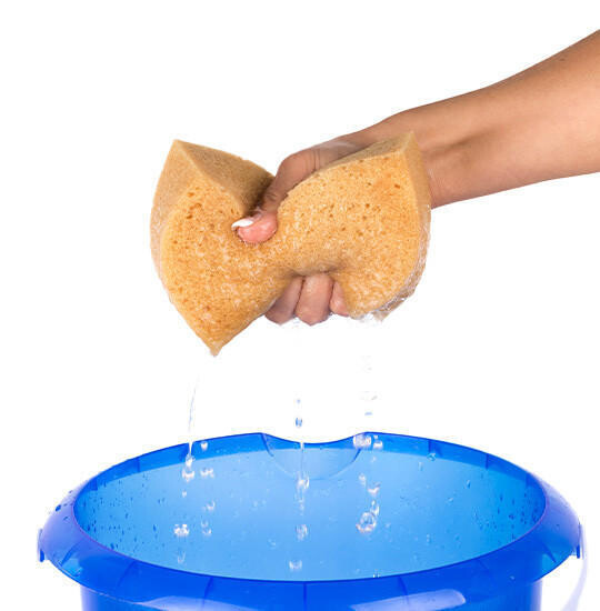 - Mit Wasser: Es gibt Kleber mit Lösungsmitteln und solche auf Wasserbasis. Wenn Sie Glück haben, handelt es sich um Letzteren. In diesem Fall lässt er sich mit Wasser und einem Schwamm aufweichen. Solange die Korkfliesen auf dem Boden sind, geht das zwar nicht optimal. Aber mit dieser Methode können Sie möglicherweise die Reste des Klebers lösen.