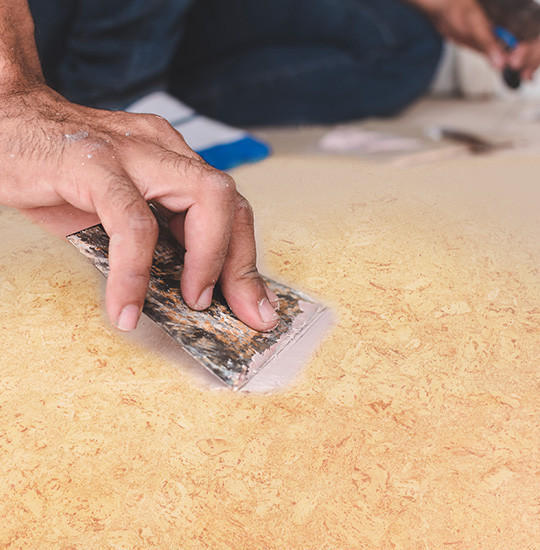 Einen fest verklebten Fliesen-Korkboden zur reparieren, geht ebenfalls: