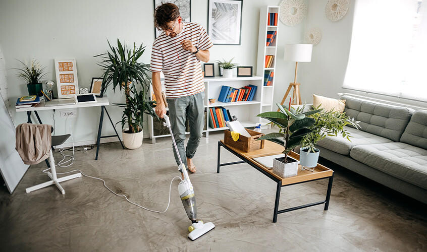 Im normalen Alltag reichen zwei Schritte, um Linoleum zu reinigen: