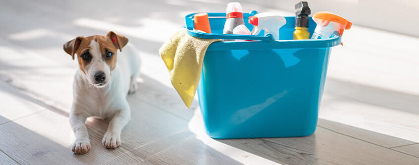 Entfernen Sie erst Staub und groben Schmutz mit einem weichen Besen oder einem Staubsauger. Eine Düse für Hartböden ist von Vorteil, um Kratzer zu vermeiden.