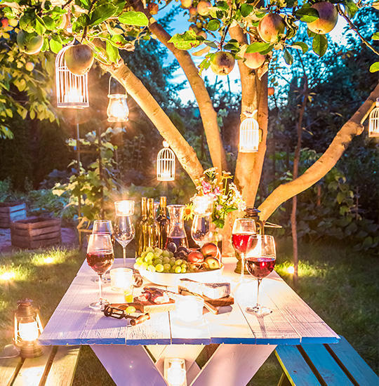 Außenleuchten spielen eine wichtige Rolle – denn sie bringen Atmosphäre in den Garten Ihres Reihenhauses. Planen Sie dafür Elemente für eine indirekte Beleuchtung in Form von Strahlern an der Hauswand sowie Spots an unterschiedlichen Stellen im Garten ein. Dezente Erdstrahler illuminieren Ihre Pflanzen von unten und sorgen für ein stimmungsvolles Ambiente am Abend. Praktisch sind Solarleuchten, die ohne Steckdose in der Nähe auskommen.