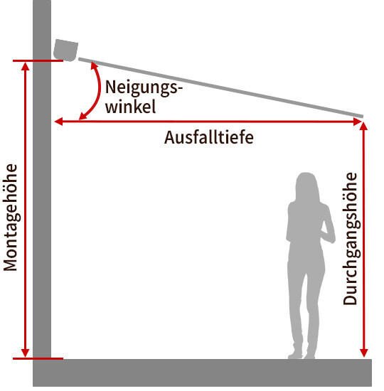 Markisen Neigungswinkel und Maße