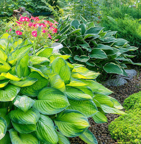 - Pflanzen mit hell panaschierten Blättern brechen den Schatten auf und sorgen für eine abwechslungsreiche Optik. Dazu gehören beispielsweise Elfenblumen und Funkien (Hosta) in ihrer großen Vielfalt.
