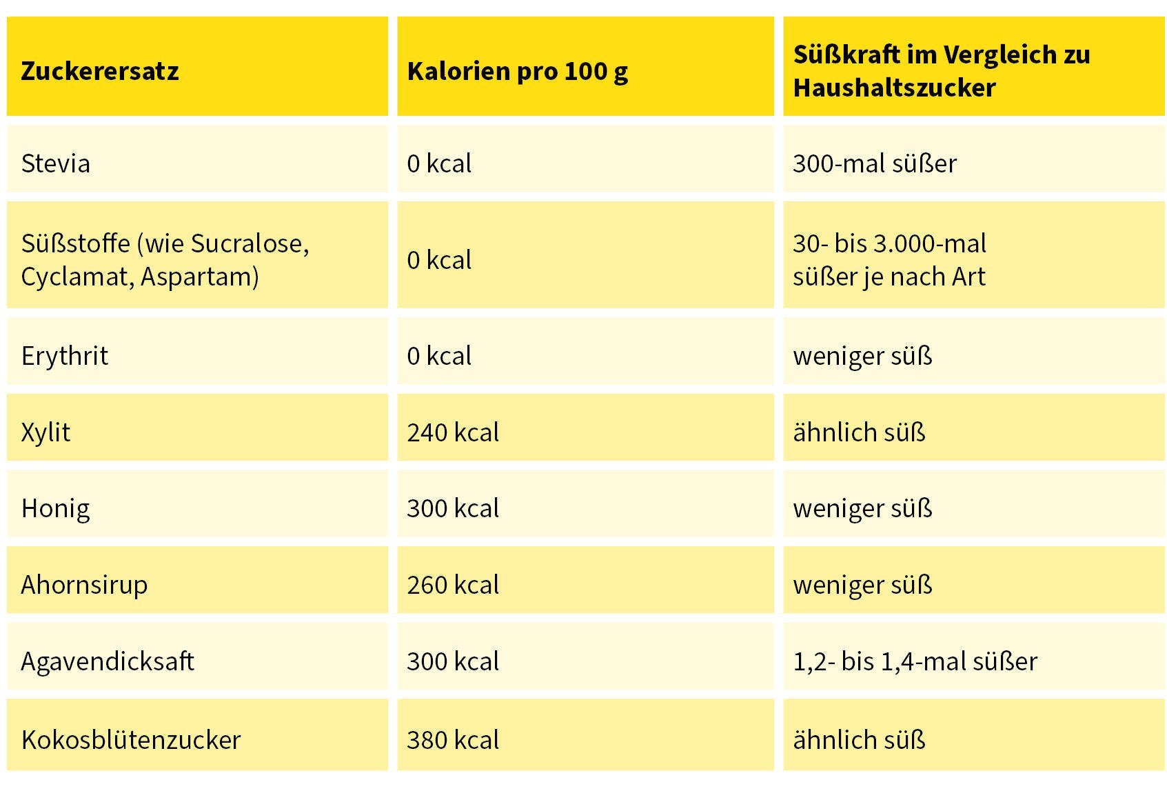 Wer sich bewusst ernährt, verzichtet häufiger auf Haushaltszucker und greift dafür mehr zu süßen Alternativen. Beim Backen ohne Zucker eignen sich verschiedene Produkte, die Süße liefern und zum Teil sogar kalorienarm sind. Die folgende Übersicht stellt Ihnen einige der Zuckeralternativen mit ihrem Kaloriengehalt und der Süßkraft vor.