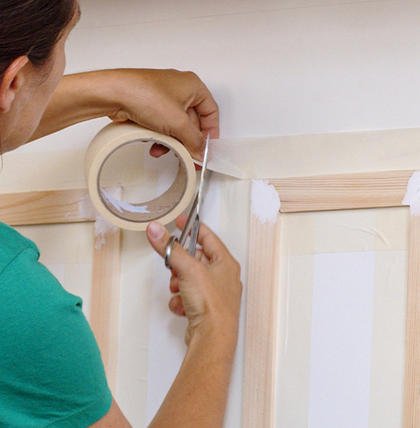 - Falls Sie auch den Korpus streichen, kleben Sie die Wände rundherum mit einem Streifen Kreppband ab und legen Sie ein Malervlies aus.