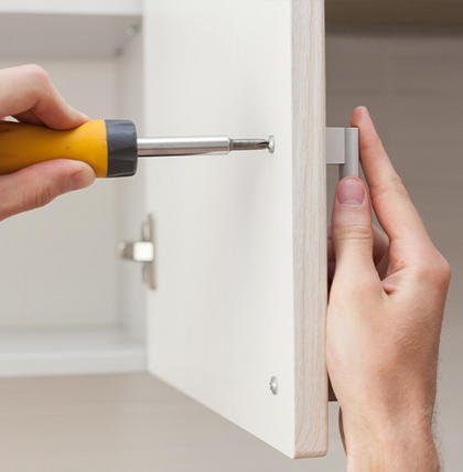 Tipp: Egal, für welche der drei Möglichkeiten Sie sich entscheiden: Wenn Sie die Fronten abbauen, machen Sie sich die Aufgabe leichter. Bewahren Sie außerdem die Topfbänder auf, die zu den Scharnieren im Schrank passen. Dabei handelt es sich um die Metallanschläge seitlich an der Tür.