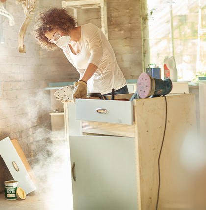 - Montieren Sie die Schranktüren ab und legen Sie die Fronten flach auf einen Tisch oder auf Böcke.