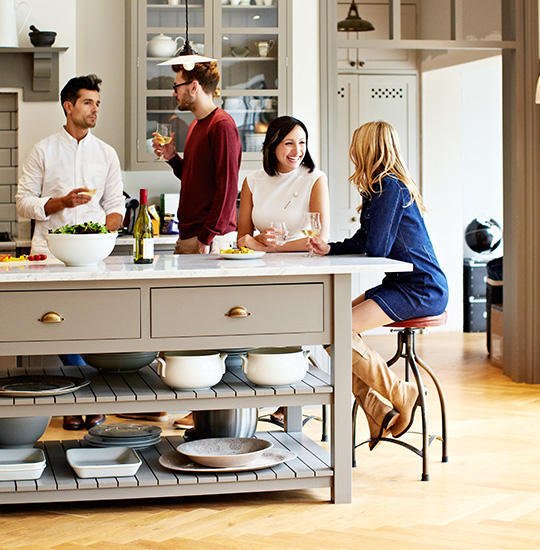 - Eine offene Küche mit Insel ist der perfekte Treffpunkt für geselliges Brutzeln mit Freunden und Familie. Ein großzügiger Küchenblock mit Barstühlen rundherum ersetzt durchaus den Küchentisch.