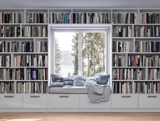 Tipp: Bewahren Sie in hoch hängenden Regalen im Flur und Bad Utensilien auf, die Sie nicht täglich benötigen. In Wohnräumen nutzen Sie umlaufende Regale an Türrahmen als stilvolle Bibliothek. Über eine Bibliotheksleiter gelangen Sie an Ihre literarischen Schätze – und sie wertet den Raum auch optisch auf.