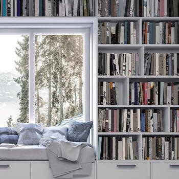 Es muss nicht immer die klassische Reihung sein. Eine optische Auflockerung erzielen Sie mit Bücherstapeln. So bringen Sie mehr Exemplare unter. Platzieren Sie die horizontalen Stapel neben einer Bücherreihe und nutzen Sie diese als Buchstützen.