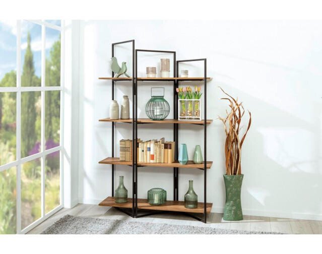 Holz und Metall – das sind die Zutaten für den industriell geprägten Stil. Schaffen Sie sich Ihr persönliches Loft mit Regalen in diesem Materialmix. Ein robustes Gestell, unverarbeitetes Holz, dicke Regalbretter und gewollte Unregelmäßigkeiten ergeben gemeinsam ein spannendes Gesamtbild für einzigartige Rauminszenierungen.
