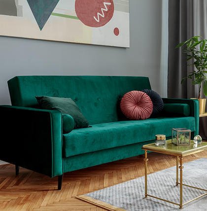 Ein weiterer alter Bekannter ist dieser unverwüstliche Sofa-Trend. Couches, die Erinnerungen an die 50er-Jahre wecken, sind seit einigen Jahren nicht aus den Kollektionen wegzudenken. Ihr Erkennungszeichen sind eher zierliche Formen und angewinkelte Füße aus Metall oder Holz. Warum solche Modelle so beliebt sind? Aufgrund ihres eigenständigen Designs eignen sie sich wunderbar für einen bunten Stilmix. Ein Retro-Sofa lässt sich ebenso leicht mit einer Hightech-Stehleuchte aus Aluminium kombinieren wie mit einem antiken Beistelltisch vom Flohmarkt.