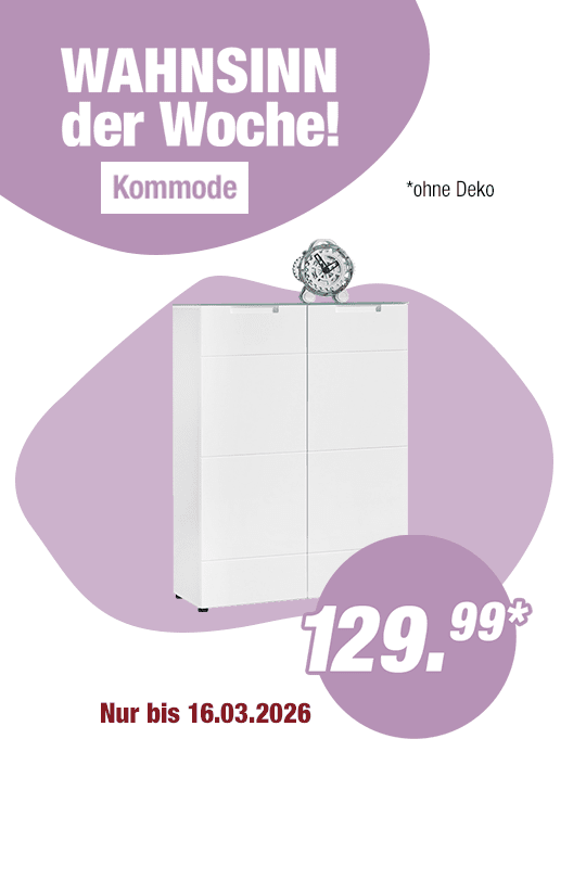 Schauen Sie sich hier in unserem Onlineshop um oder besuchen Sie uns in einem unserer Märkte. Mit unseren Möbeln und Accessoires können Sie Ihren persönlichen Wohn(t)raum schaffen - und das immer zum günstigen Preis.