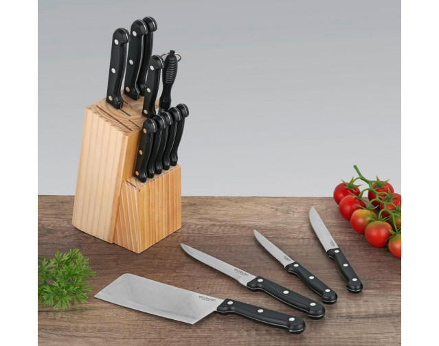 Die sicherste Aufbewahrung für Ihre Küchenmesser ist ein Messerblock. Die Vertiefungen des Holzblocks nehmen die scharfen Messerklingen auf und schützen so vor Verletzungen. Des Weiteren haben Sie Ihre Messer durch den Block auf der Arbeitsplatte jederzeit griffbereit. Alternativ können Sie Messer auf magnetischen Haltern oder in einer Besteckschublade aufbewahren.