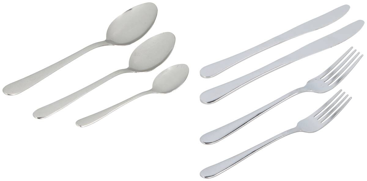 Dieses Set besteht aus 6 Esslöffeln, 6 Gabeln, 6 Messern, 6 Dessertlöffeln, 6 Dessertgabeln, 6 Dessertmessern und 6 Teelöffeln.