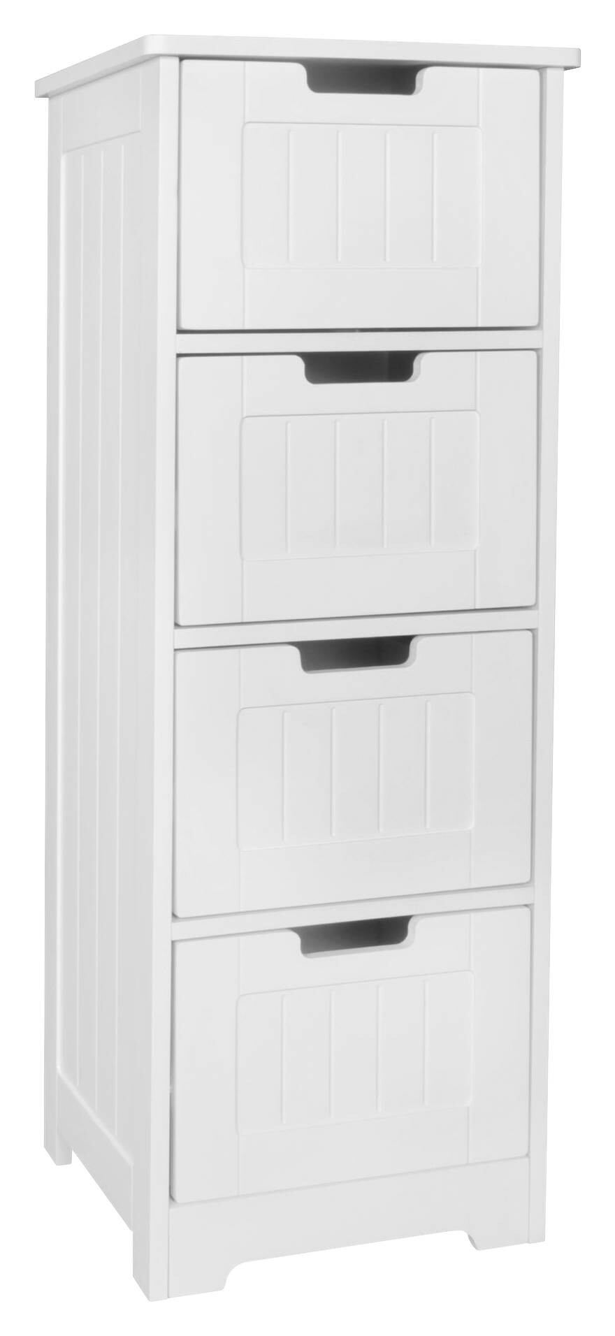 LIEFERUMFANG: Ein Badschrank ohne Dekoration // Aufbauanleitung und -material inklusive // Lieferzustand: Zerlegt und praktisch verpackt // BESONDERHEITEN: Viel Stauraum um diverse Altagsgegenstände unterzubringen // Ablage für weitere Utensilien wie Spiegel oder Schmuckkästchen // Individuell einsetzbar // MATERIAL: Komplette Kommode ist aus matt weiß lackiertem MDF (Mitteldichte Holzfaser) // ABMESSUNGEN: Breite: 30 cm, Höhe: 83 cm, Tiefe: 30 cm // Schubladeninnenmaß BxHxT: 24,5 x 17,5 x 26 cm
