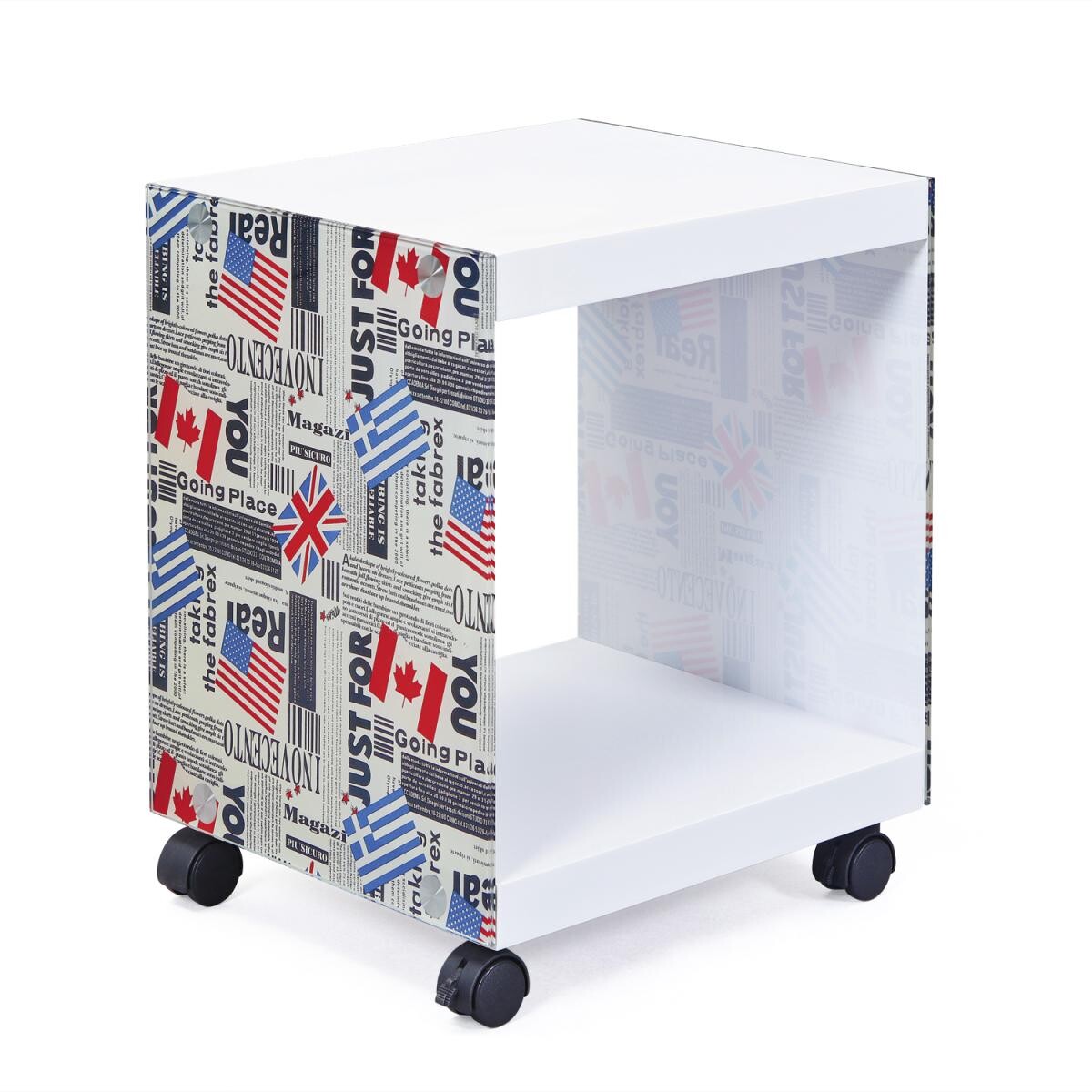 Praktischer Beistelltisch mit 4 Rollen. Aus MDF-Wabenplatte und Sicherheitsglas mit