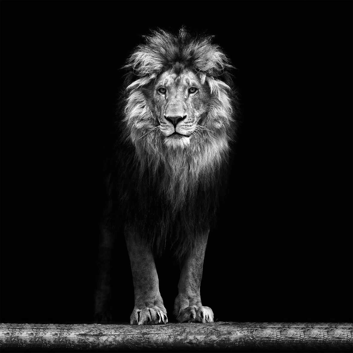 Dieses Keilrahmenbild misst ca. 35 x 35 cm und zeigt einen kraftvollen Löwen in elegantem Schwarz-Weiß. Das reduzierte Design bringt zeitlose Stärke und Stil in Ihr Zuhause - perfekt für moderne und anspruchsvolle Wohnräume.