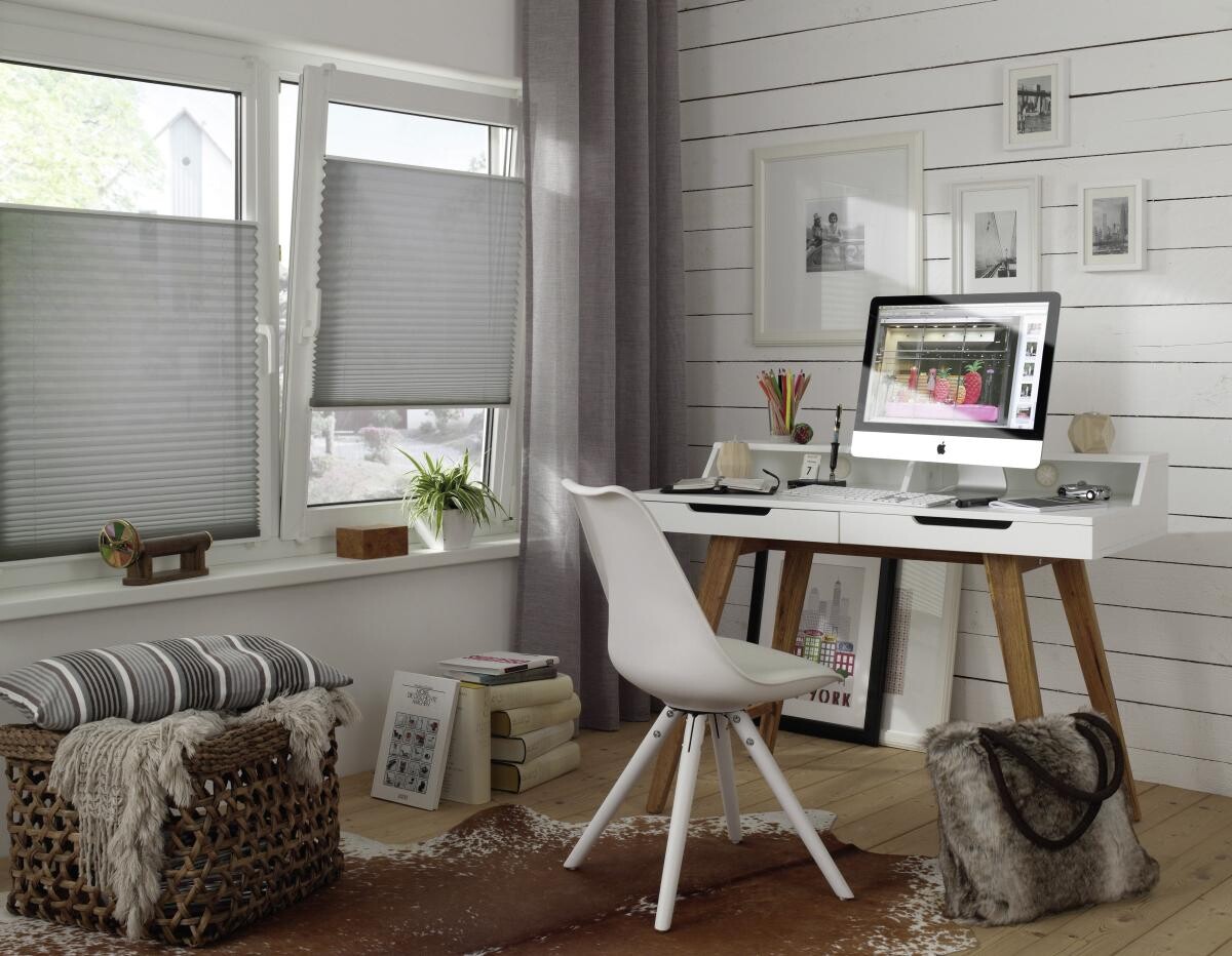 Das blickdichte Plissee bietet optimalen Sichtschutz von außen. Über 2 Bedienschienen aus Aluminium ist es individuell höhenverstellbar. Durch die 4 mitgelieferten innovativen Träger ist es für die Montage im Glasfalz durch Schrauben geeignet. Die Plisseefalte beträgt ca. 20 mm und es besteht aus 100% Polyester. Erhältlich ist es in dem Maß von ca. 85 x 130 cm.
